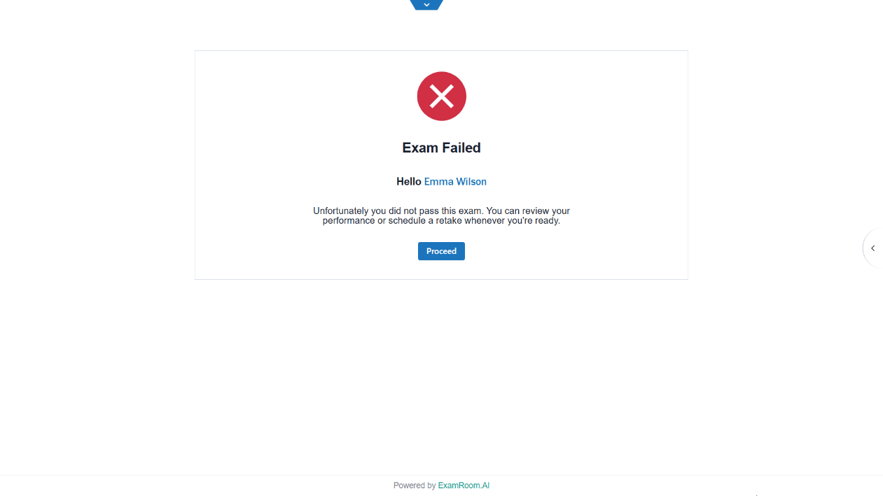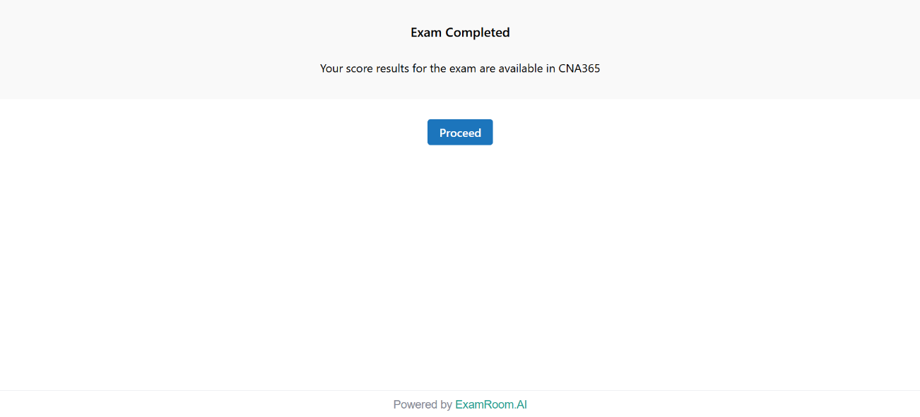 - After submitting, you may see an exam result preview or exam completion notification. Click Proceed.