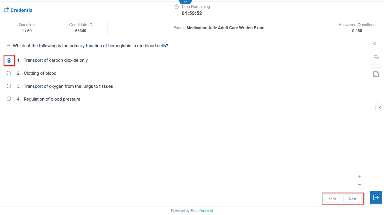 - To answer a question, carefully review the question and all answer choices, then select your response.