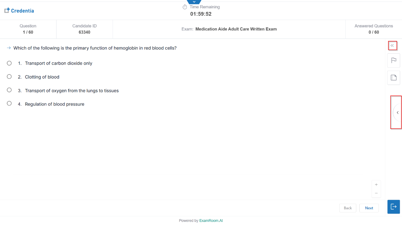 Note: - If you need to contact the proctor during the exam, open the sidebar by clicking the arrow on the left side and then access the chat window to communicate.