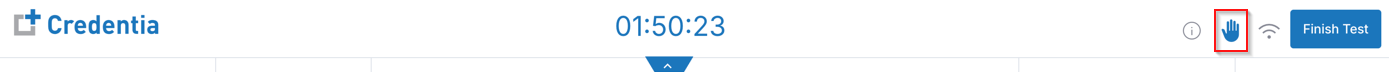 - Hand icon to raise a hand to speak with the proctor.