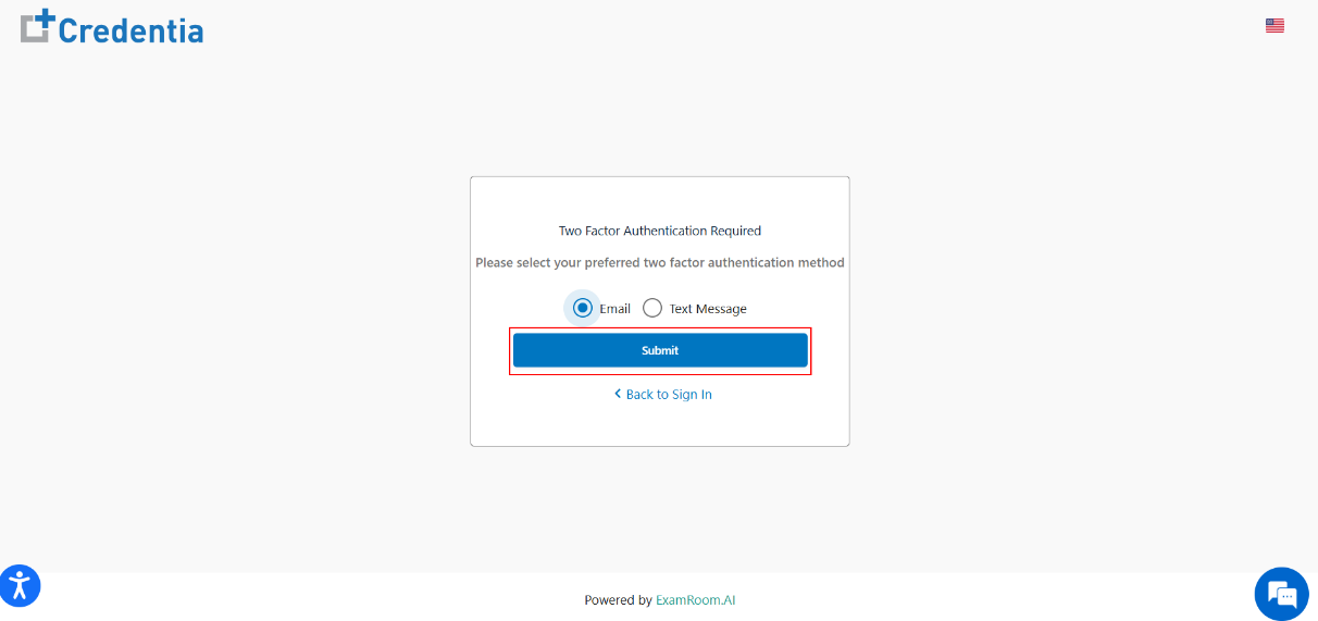 - If two-factor authentication is enabled, select the verify option for Email or Text Message and click Submit.