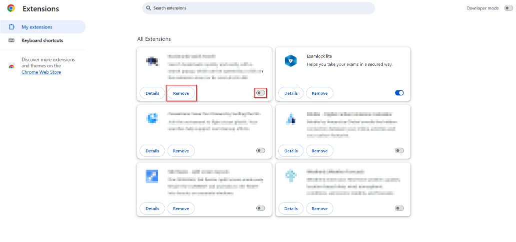 Note: After completing the exam, the Examlock Lite extension will be automatically uninstalled. Also, you can follow the same steps as above to visit the extensions section and remove it after your exam.