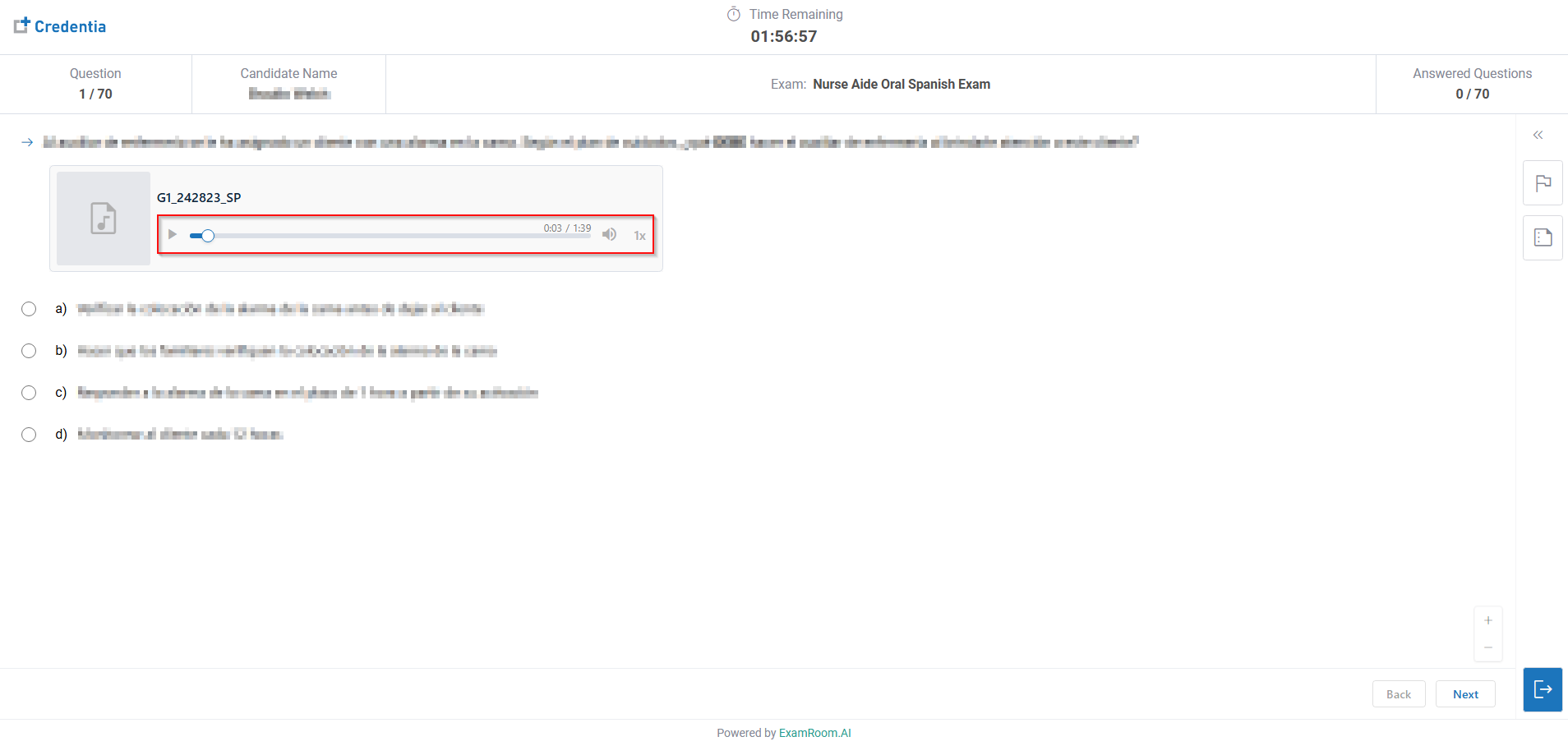 - If you choose the Oral exam, you can listen to the questions by playing the audio in the question section.